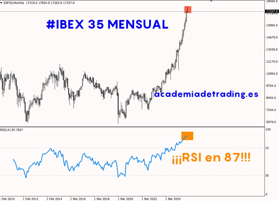 Y ahora mismo, el RSI mensual del Ibex está más cerca de 90 que de 80…