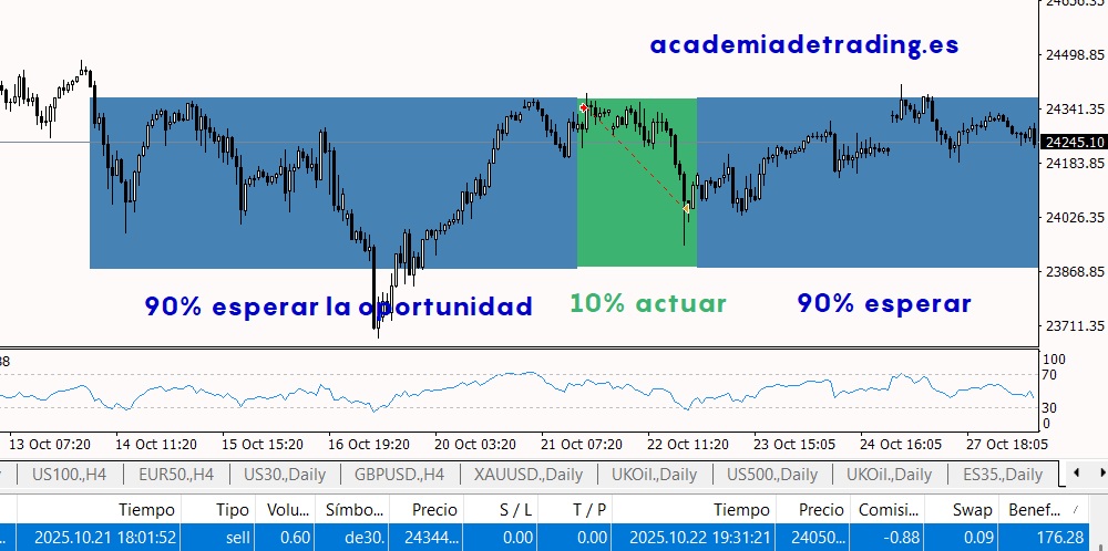 De hecho, en esta Academia limitamos el tiempo de exposición al mercado, es uno de los pilares fundamentales. Y no sólo para aprovechar tu vida con otras rutinas más saludables. Sino porque, cuanto menos tiempo estés enganchado, más dinero ganarás.