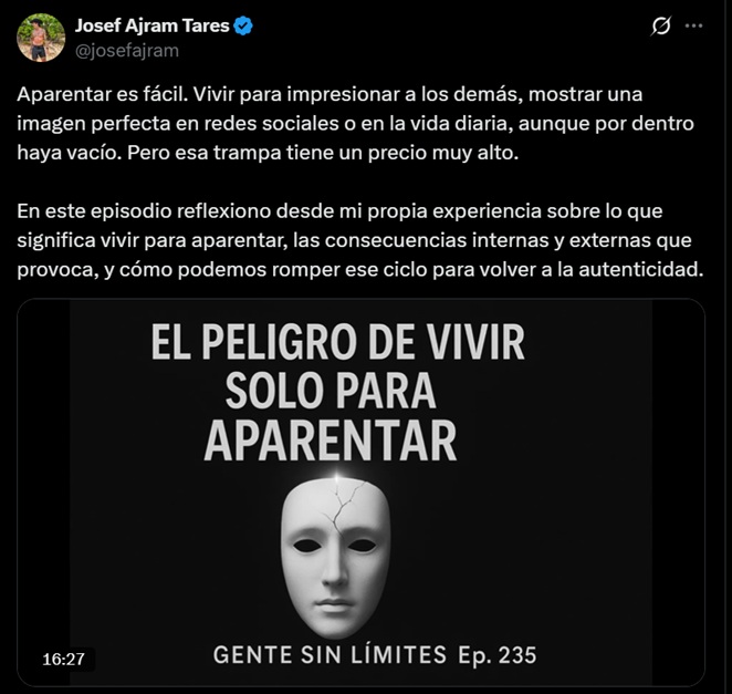 Por eso, cuando me paré a leer el titular de aquel post, me sorprendió tantísimo lo que estaban viendo mis ojos, es que no me lo podía creer. Era la introducción a un podcast que se llamaba «El peligro de vivir sólo para aparentar». La curiosidad que se generó en mi cabeza ipso-facto me empujó a escuchar el capítulo sin dudarlo, y después llegaron otros con titulares que también despertaban mi atención.