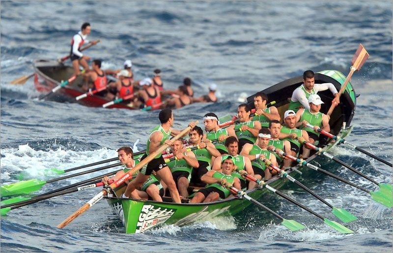 Reconocí al instante la embarcación porque llevaba siguiendo las temporadas de traineras desde que era un crío. Sabía que las azules pertenecían a Astillero y Urdaibai, la blanca era la de Pedreña, la roja siempre fue la de Castro Urdiales, la amarilla pertenecía a Orio, la rosa a Sestao/Kaiku y la inconfundible embarcación verde que tenía delante de mis narices era la de Fuenterrabia.